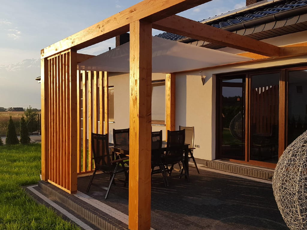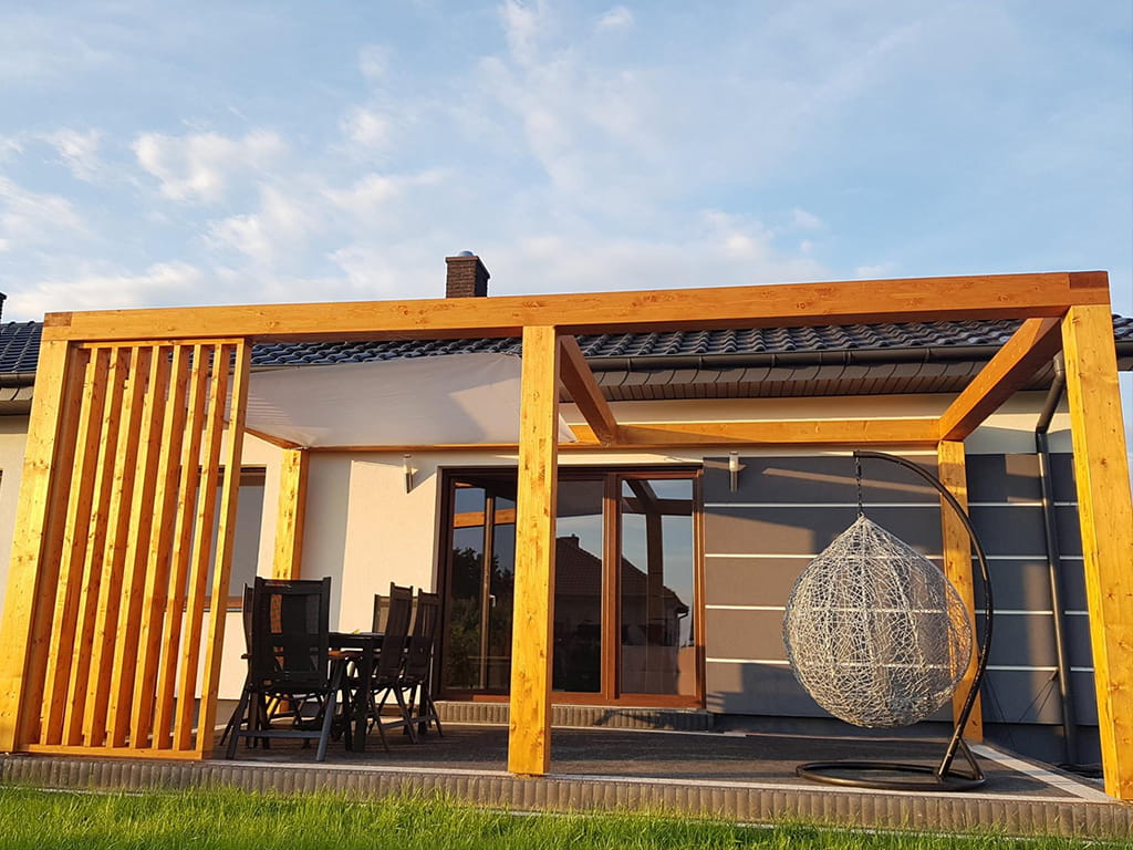 - Schaffung einer Schattenzone und eines Windschutzes über der Freizeitterrasse,