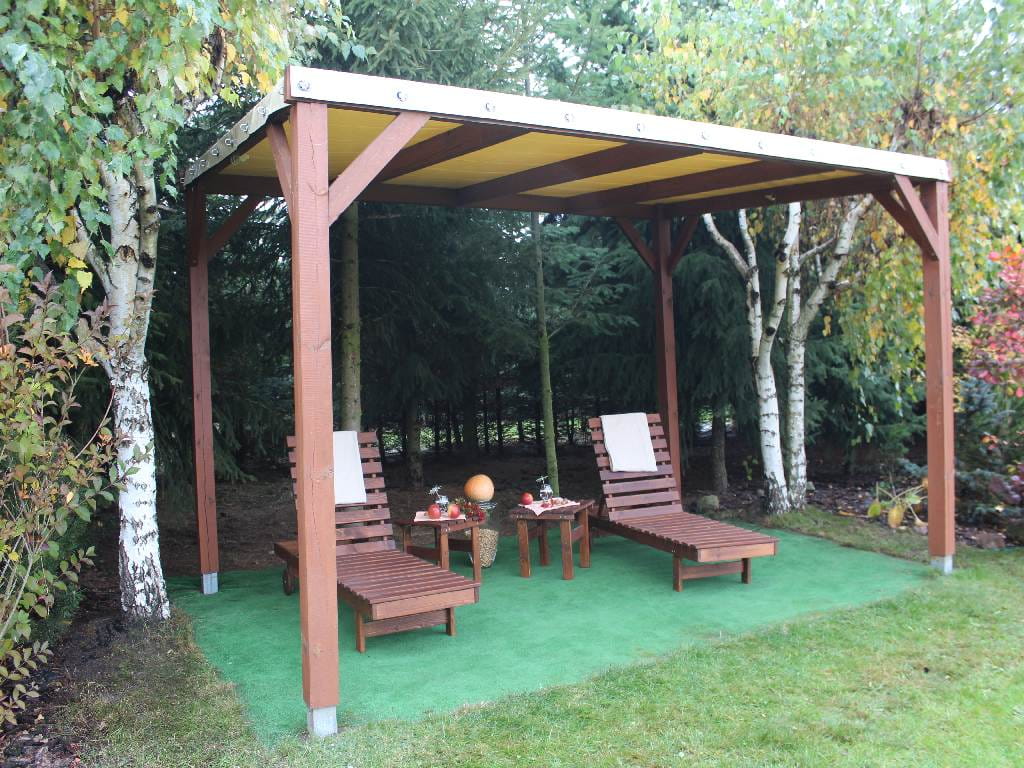 - it protects garden furniture, cushions etc. from rainfall,