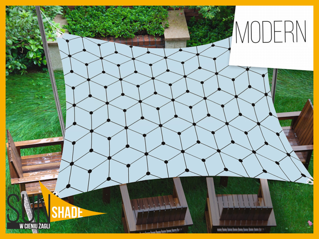 Purje on valmistettu kankaasta - tehdasvalmisteinen valkoinen premium-kangas – decor 200 g/m², jossa on yksipuolinen painatus, joka suojaa sateelta ja auringolta. Koostumus – 100 % polyesteriä. Kankaan vedenpitävyyden vuoksi purje on asennettava vinoon, jotta vesi pääsee valumaan vapaasti pois. Räätälöity tuote.