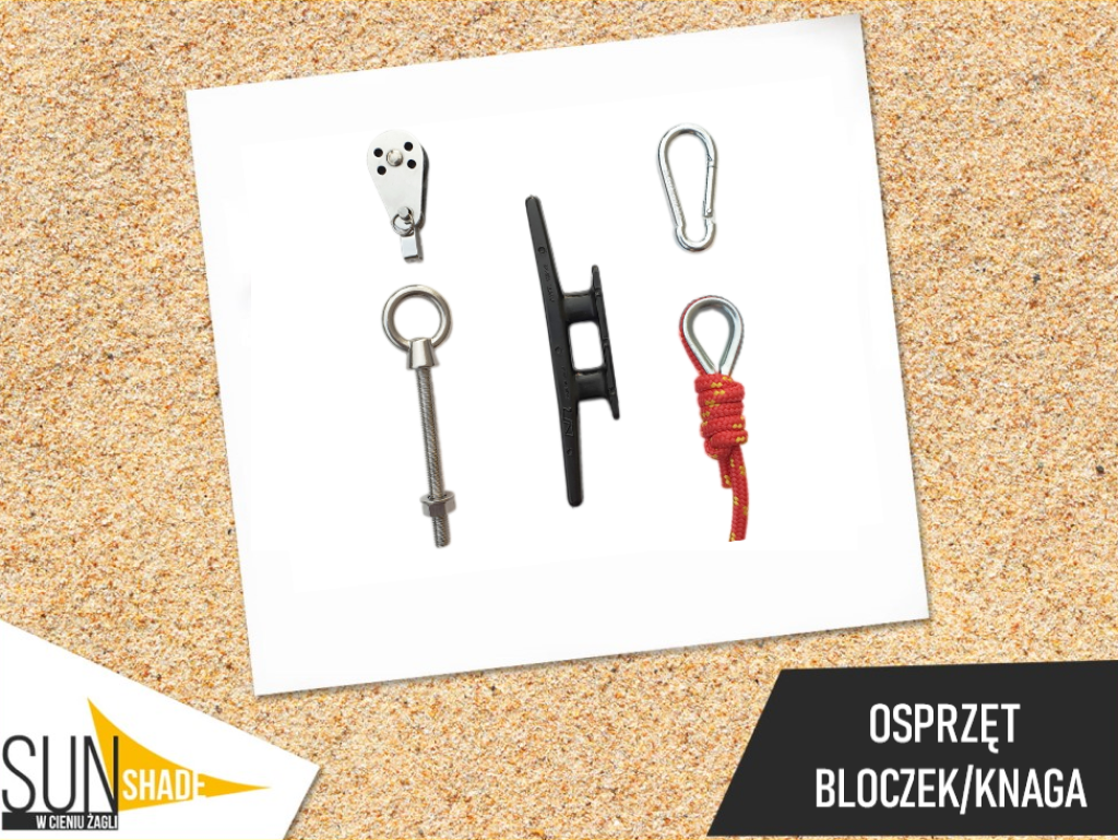 Aurinkopurjeen kiinnityssarja köysilukolla ja taljalla