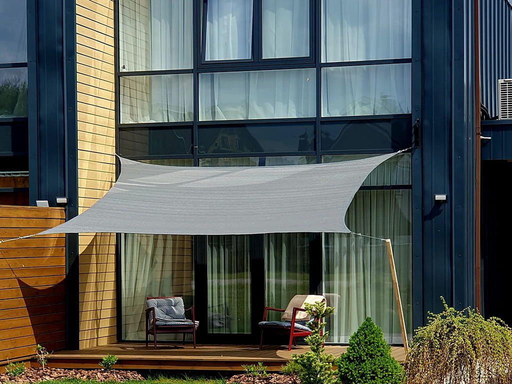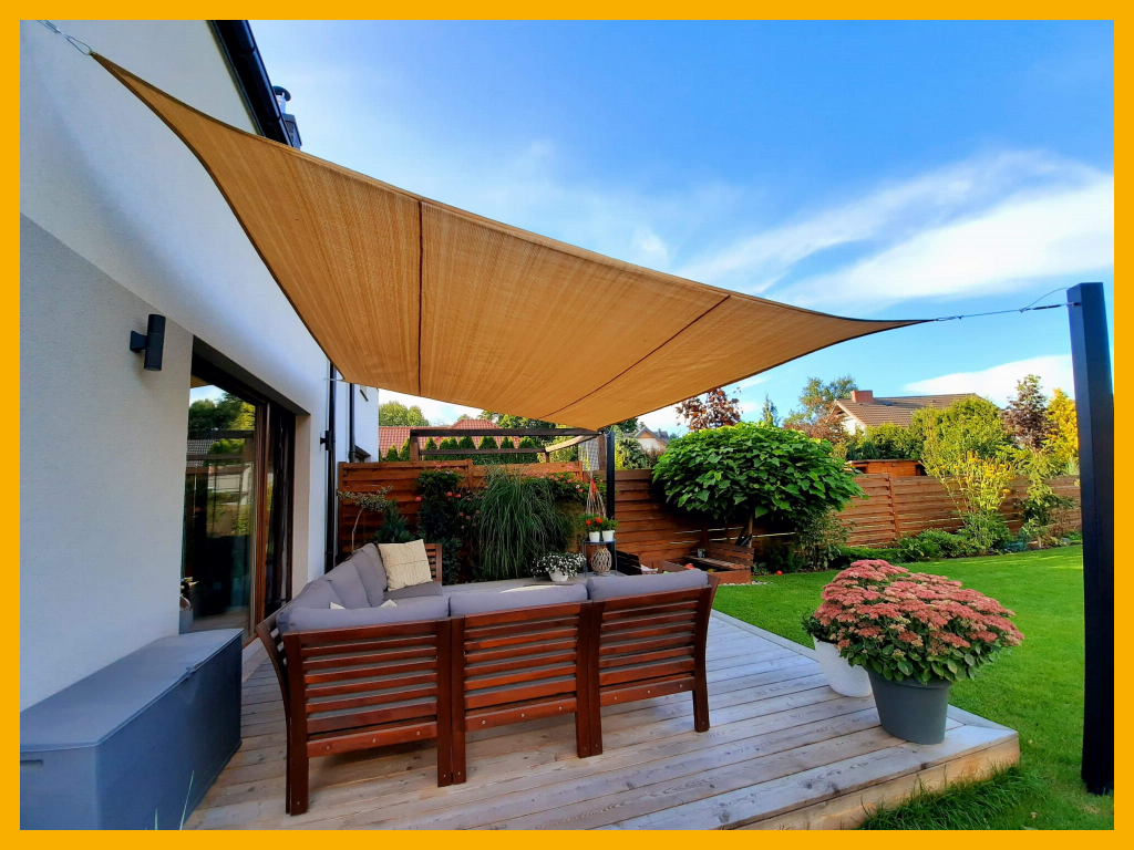 Aurinkopurjeet HDPE MUKAUTETTU. HPDE:n mittatilaustyönä valmistettu aurinkopurje, joka on leikattu ja ommeltu odotuksiesi mukaan.