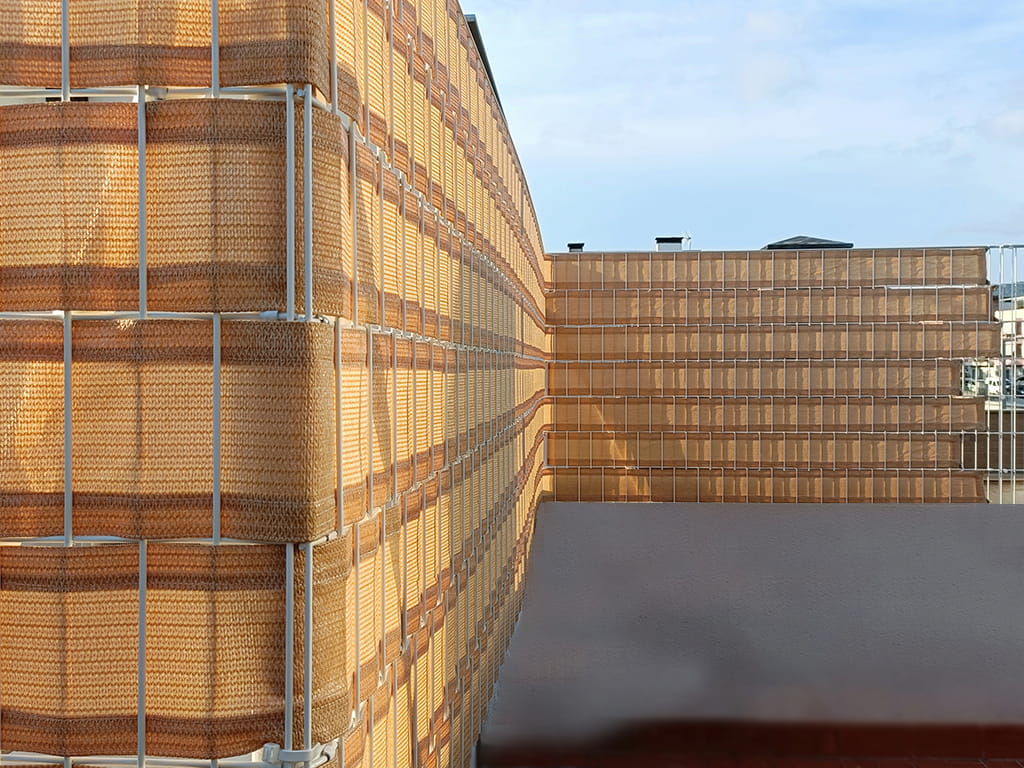 Suoja valmistetaan kestävästä HDPE-kankaasta, jonka paino on 285 g/m². Materiaali on suunniteltu erityisesti ulkokäyttöön ja kestää hyvin sadetta, tuulta, UV-säteilyä, kosteutta ja pakkasta. Kangas on samalla hengittävä, mikä vähentää tuulen aiheuttamaa rasitusta aidalle.