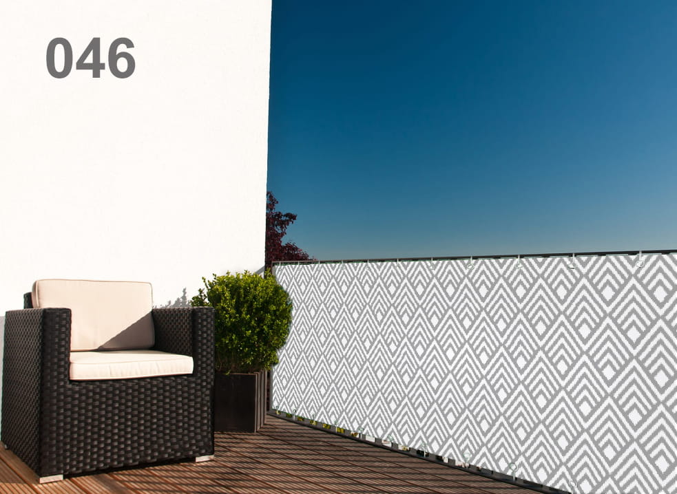 Parvekesuoja kuviolla – mittatilaus yhdistää käytännöllisen suojan ja modernin ulkonäön. Se toimii tehokkaana näkösuojana parvekkeella ja vähentää näkyvyyttä naapureilta tai ohikulkijoilta. Samalla se luo viihtyisämmän ja yksityisemmän tilan parvekkeelle.