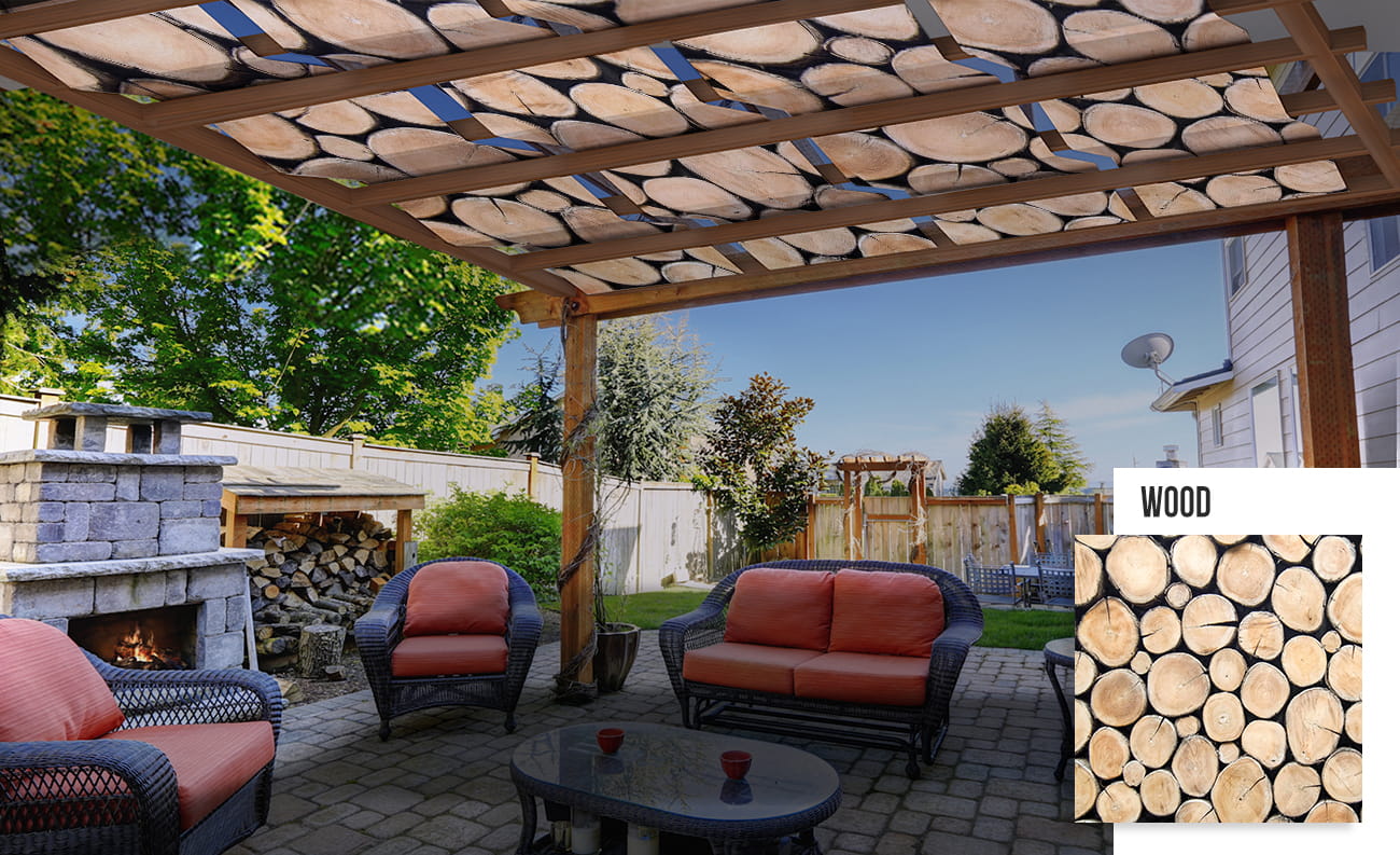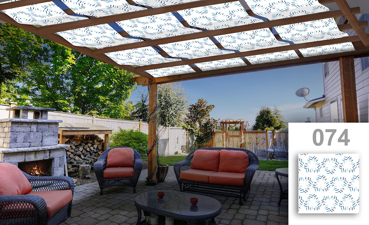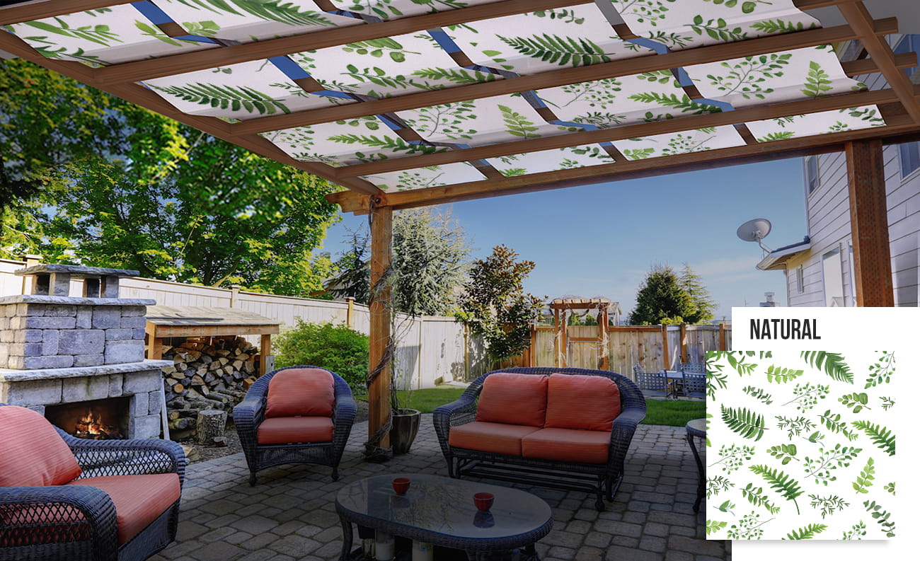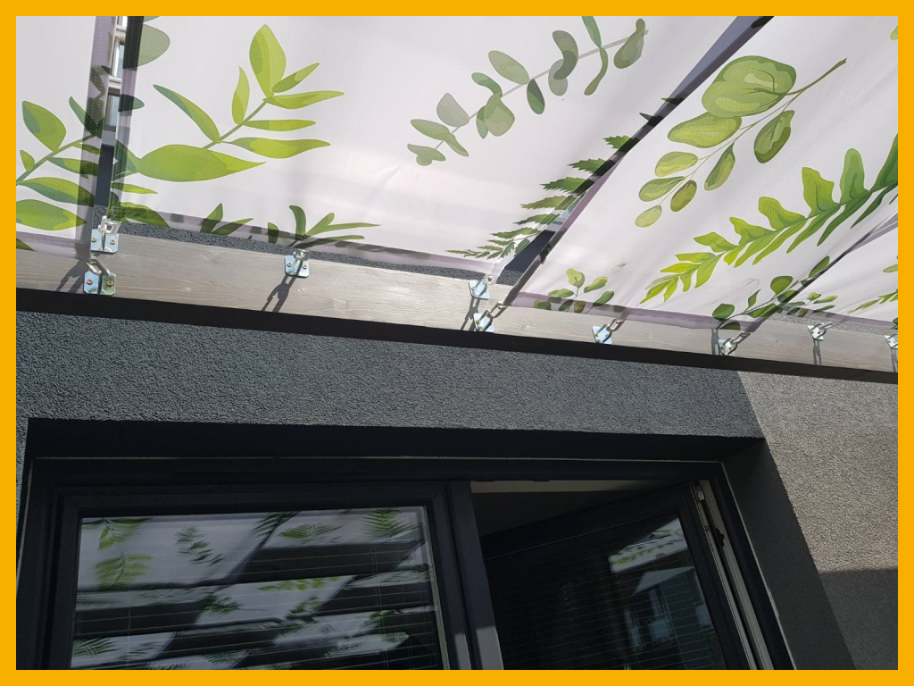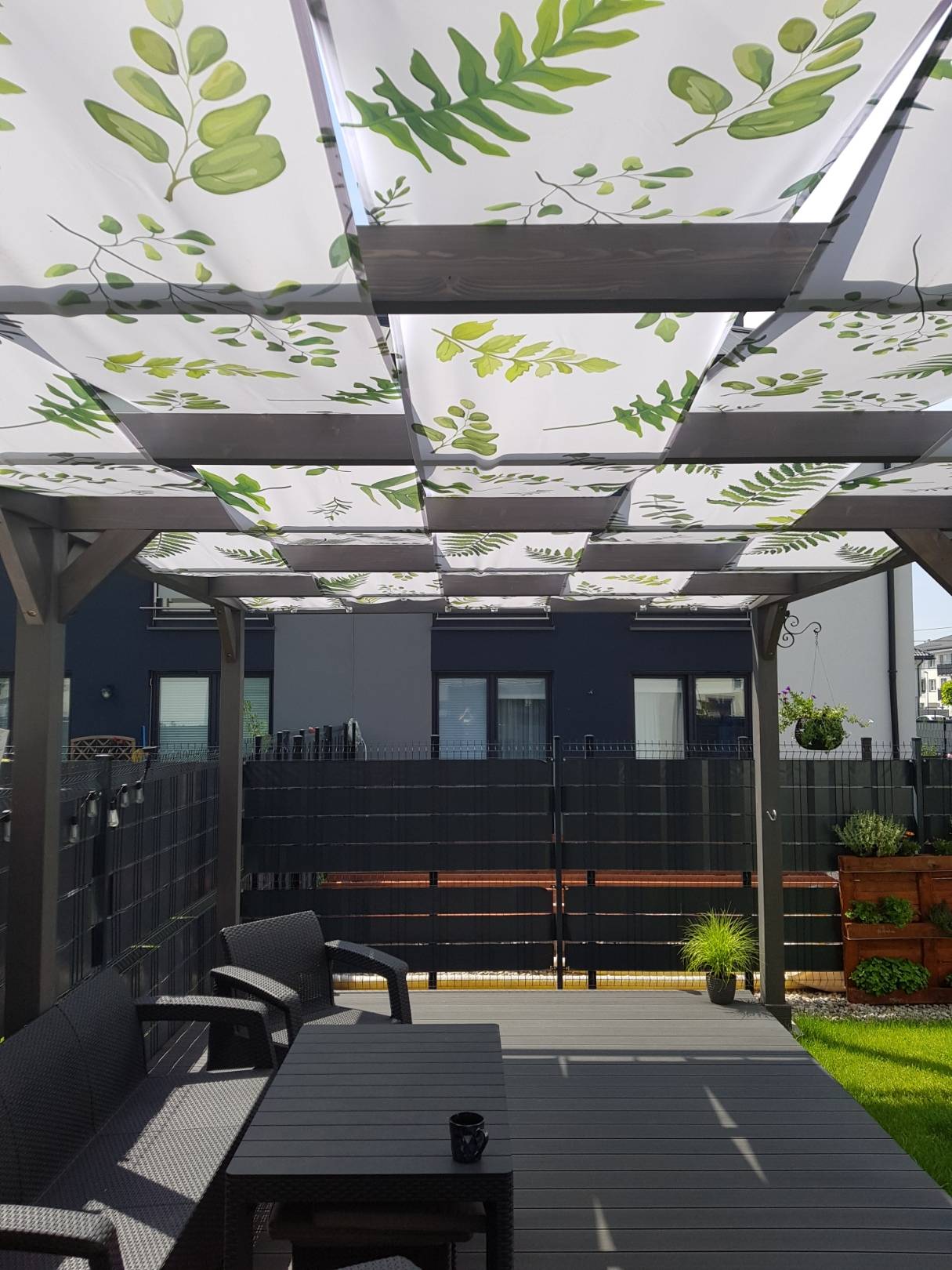 Pergolan varjostus väliseinien kaihtimet painatuksen kanssa MUKAUTETTU