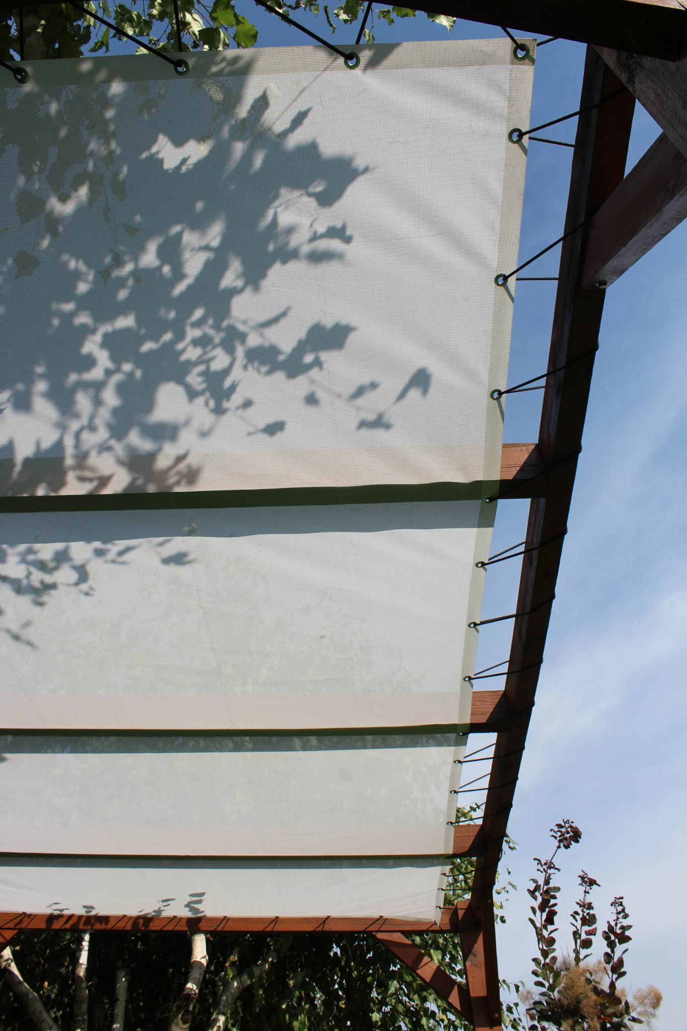 - valmistettu vahvasta materiaalista – tehtaan valkoisesta polyesteriverkosta – 270 g/m², joka suojaa auringon säteiltä ja päästää sateen läpi Virtaavat sadevirrat tekevät tuotteesta itsepuhdistuvan – eikä siten takaisin kerääntymätön vesi heikennä materiaalia tai asennusosia,