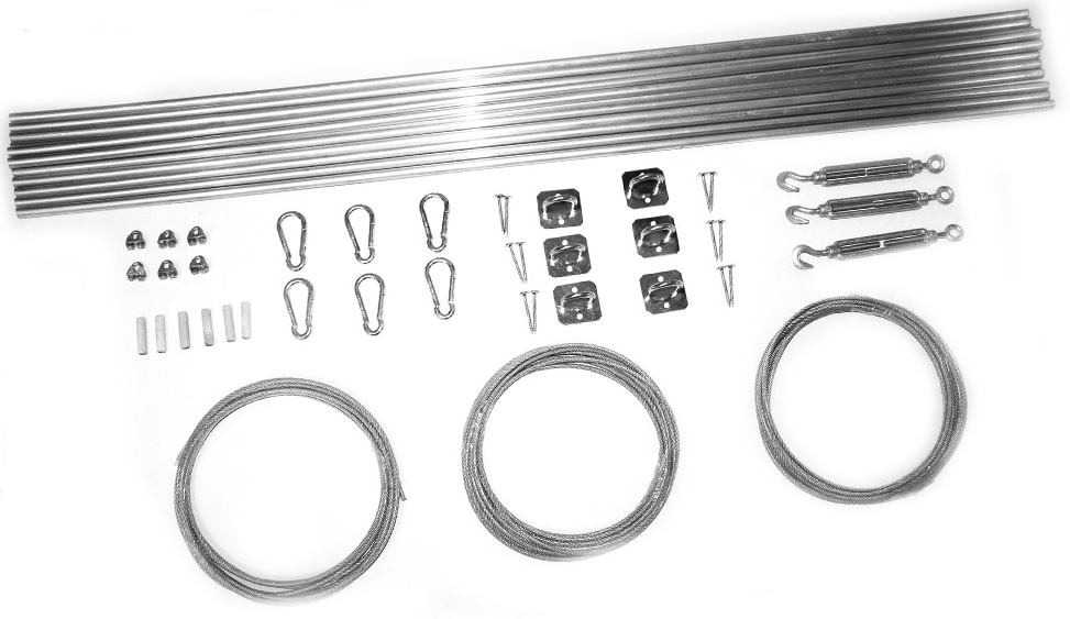 - teräsvaijeri - 6 metrin pituiset, määrä mukautetaan rullaverhon kokoon,