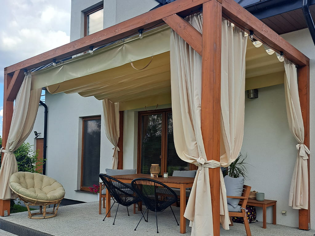 Vaakasuorat rullaverhot sopivat erinomaisesti huvimajojen, pergoloiden ja parvekkeiden varjostamiseen.