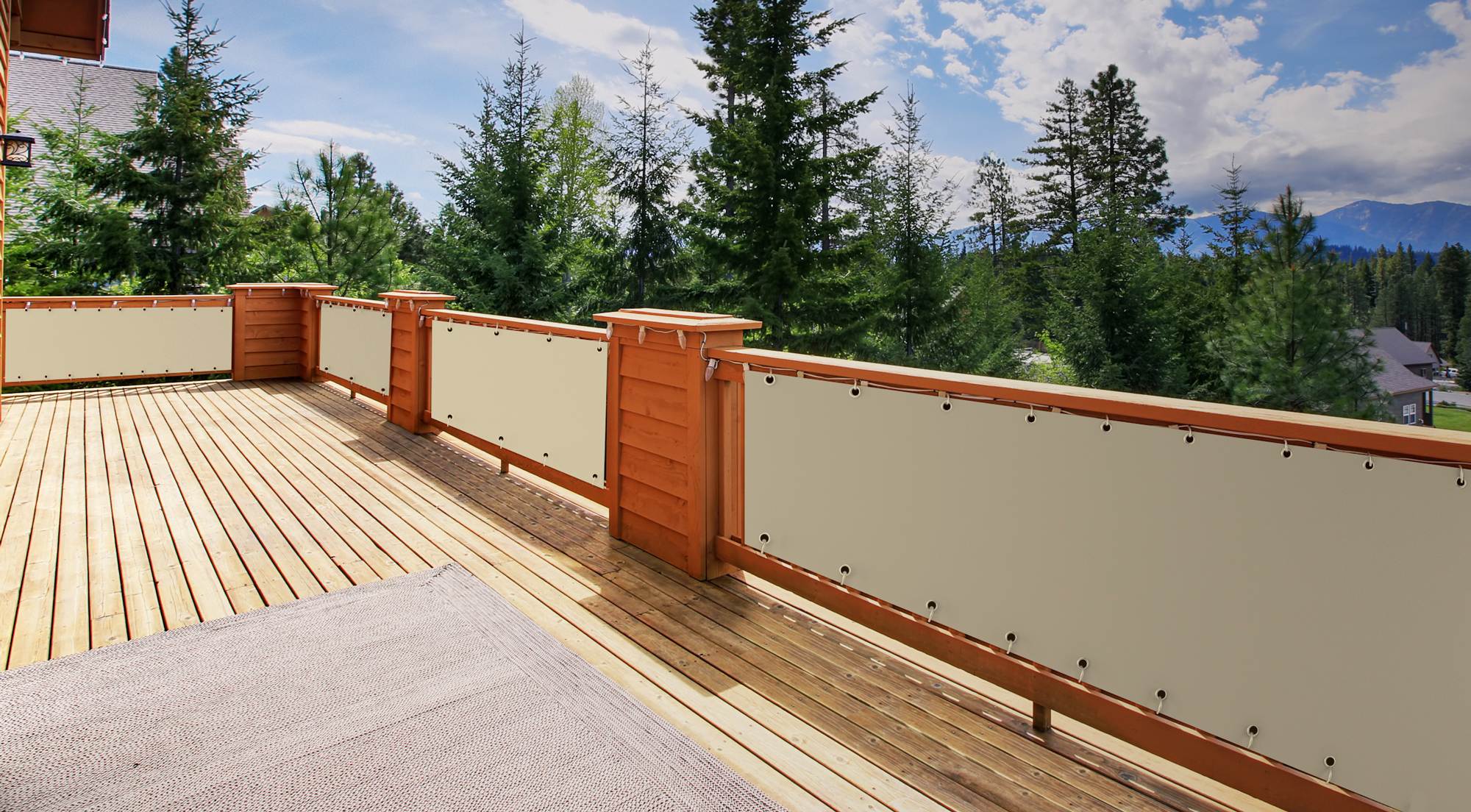 Si la hauteur de votre balustrade est de 105 cm, il est conseillé de choisir une toile d’environ 100 à 102 cm de hauteur.