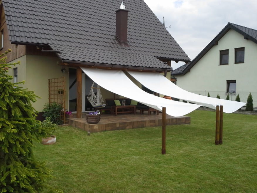 A vitorla anyaga véd a napsugarak ellen, és átengedi az esőt. Az áramló esőfolyamok öntisztítóvá teszik a terméket - és a víz, amely így nem marad meg, nem gyengíti az anyagot vagy a rögzítőelemeket.
