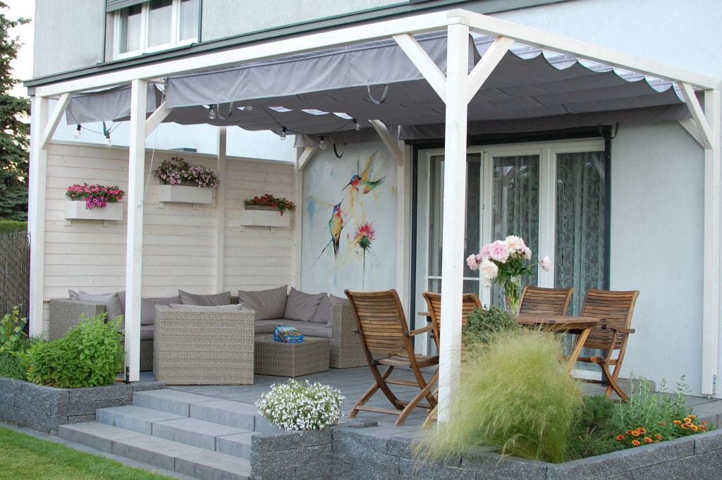 Horisontale liftgardiner er perfekt egnet til skyggelegging av paviljonger, pergolaer og balkonger.