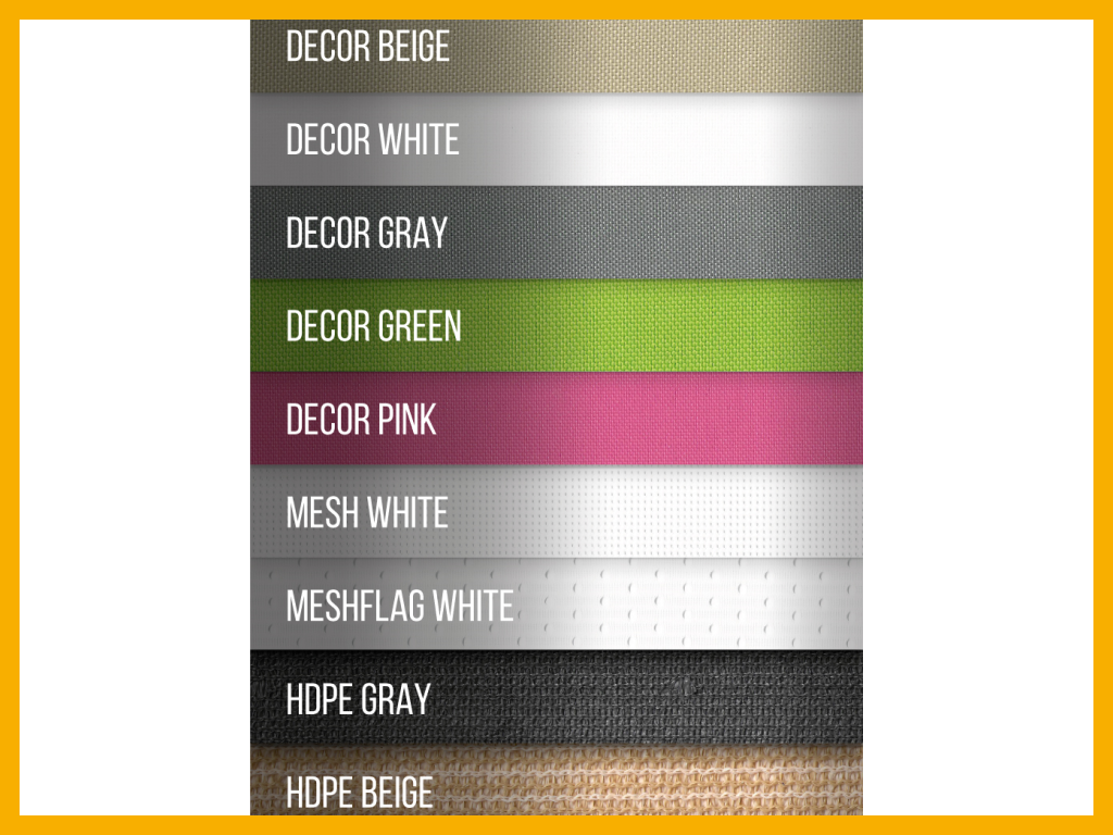 țesătură de decor 200 g/m² în culorile alb, bej, gri și verde pentru producția de: vele impermeabile premium, jaluzele romane, vele glisante, perdele, copertine de balcon, corturi tipi și hamace cocon.