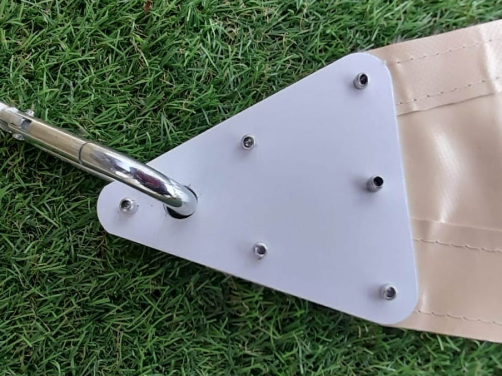- fiecare colț este finisat cu plăci de oțel nituite cu un cârlig de prindere,