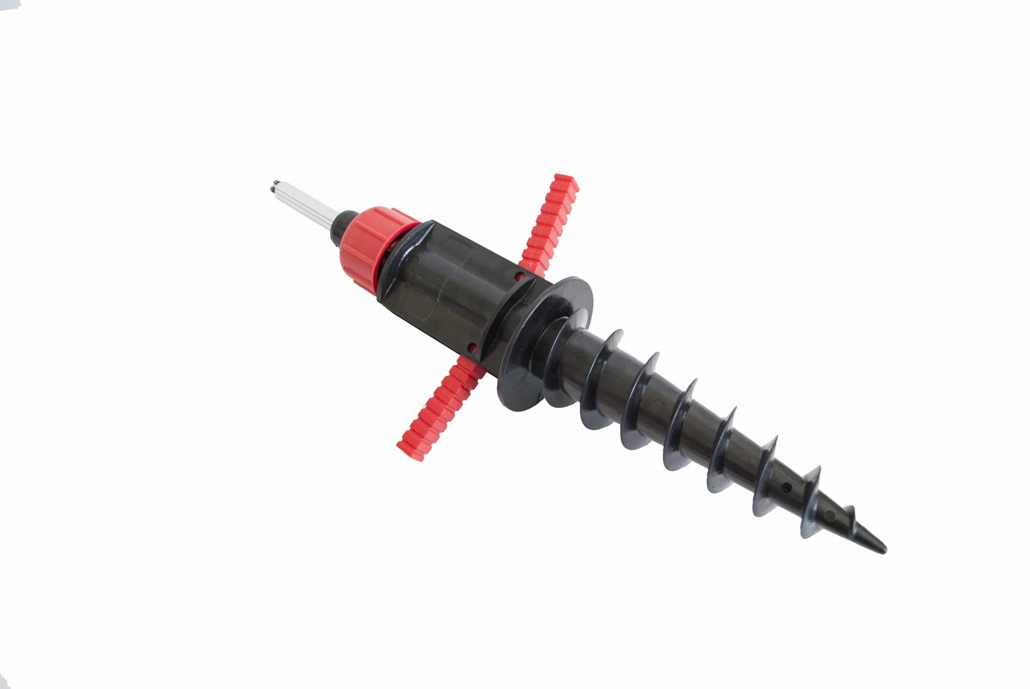 - plastic ground strake – základňa na priskrutkovanie do zeme, trávnika, piesku,
