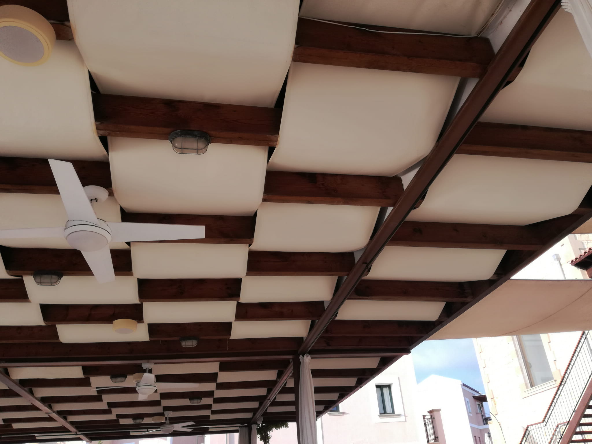 Çardak şerit tenteleri, kavurucu yaz güneşine karşı mükemmel bir koruma sağlar. Zararlı UV ışınlarından korurlar ve çok çeşitli tasarımları sayesinde mükemmel ve modern bir dekorasyon oluşturabilirler. Şerit tenteler, çardaklar, pergolalar ve balkonlar için idealdir. Standart boyutları: 0,4x5m ve 0,7x5m.