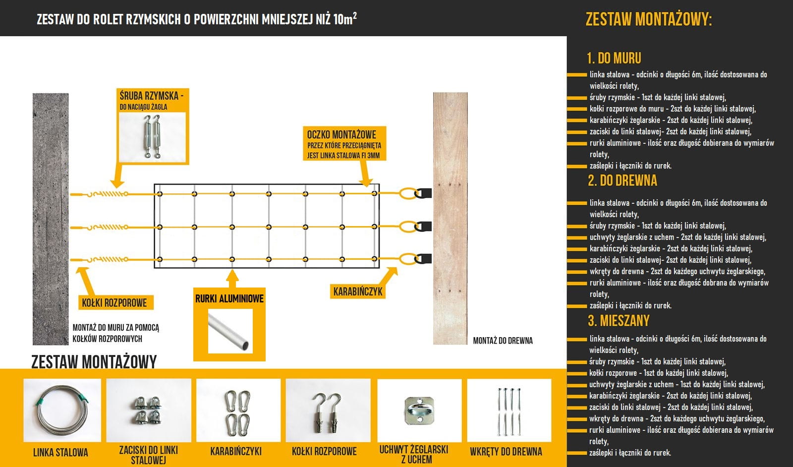 - alüminyum borular - miktar ve uzunluk, perdenin boyutlarına göre ayarlanabilir,